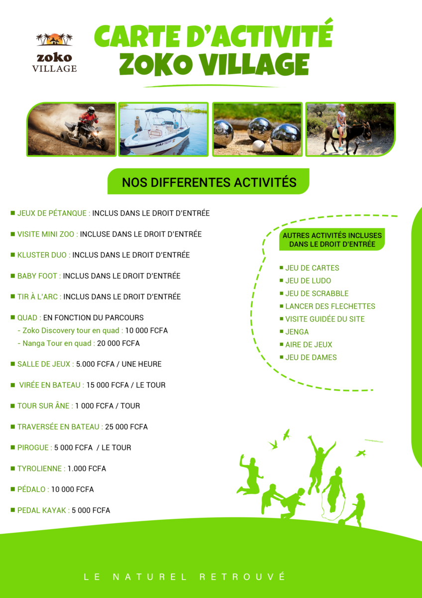 Payez 500fcfa du droit d’entrée et bénéficiez de toutes ces activités